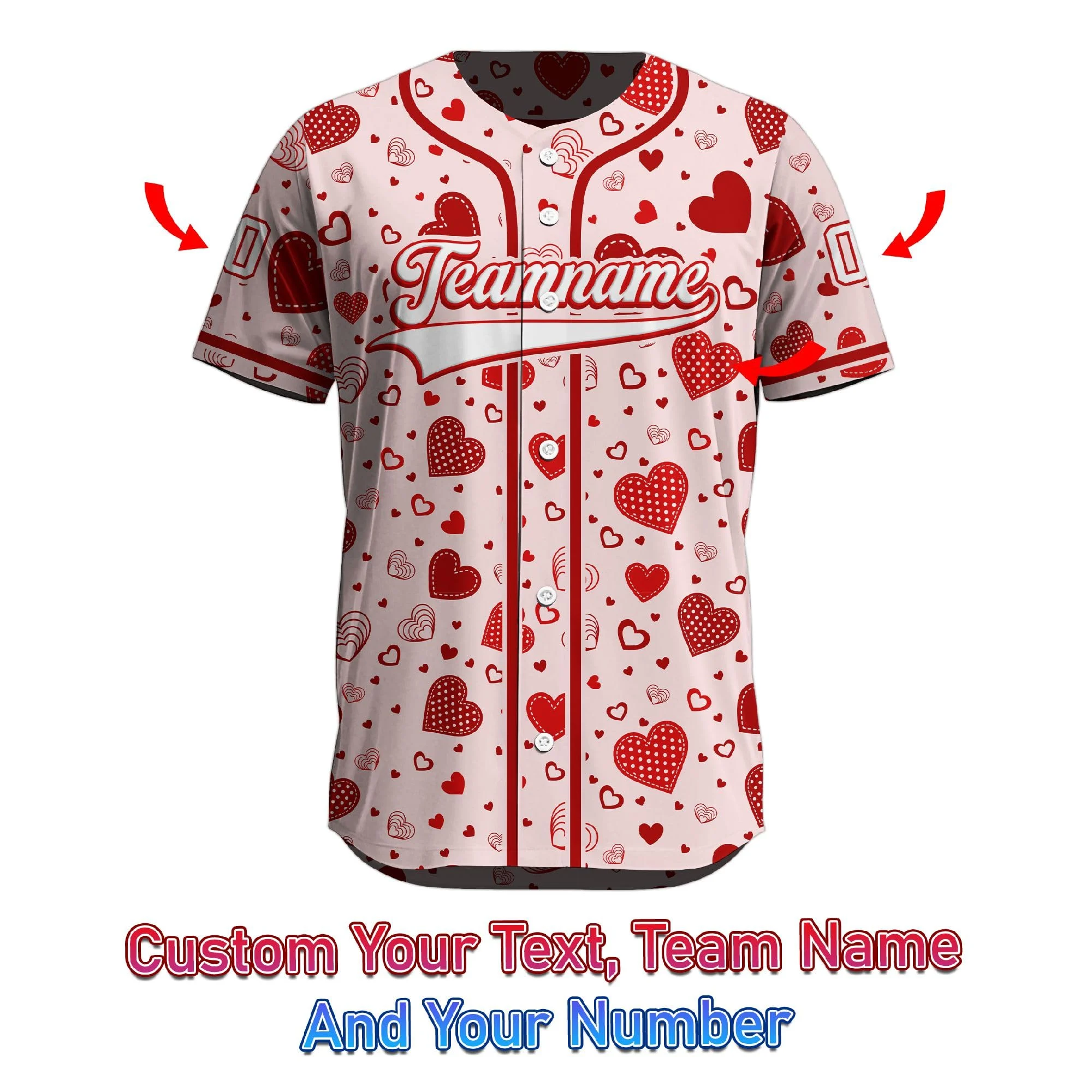 The body of the jersey is fully covered with heart motifs in various sizes and styles:
