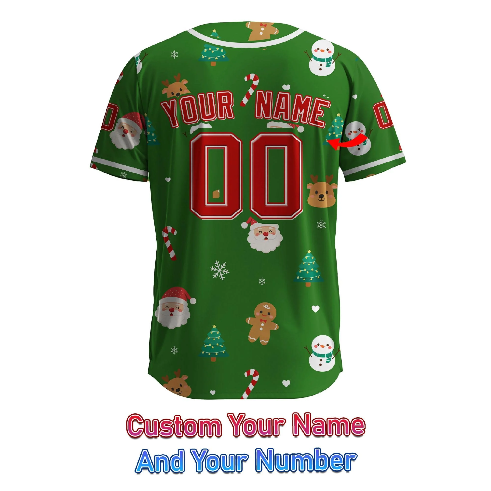 The pattern on this jersey is designed on a rich dark green/Christmas green background, creating a festive and joyful holiday feel.